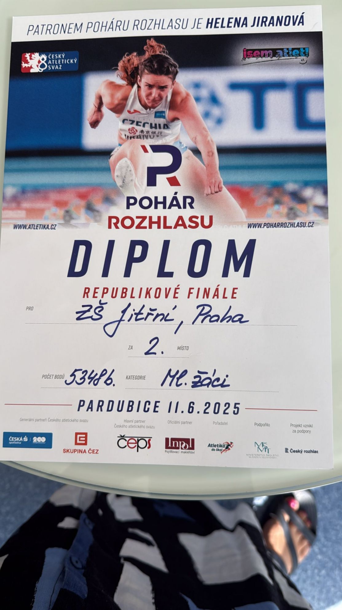 V úterý 11. června 2025 se v Pardubicích konalo republikové finále tradiční atletické soutěže - Pohár rozhlasu, kterého se zúčastnily nejlepší školní týmy z celé České republiky. Závodilo se v těchto disciplínách: 60 m, 1000 m, hod míčkem, skok do dálky, skok do výšky, štafetový běh.