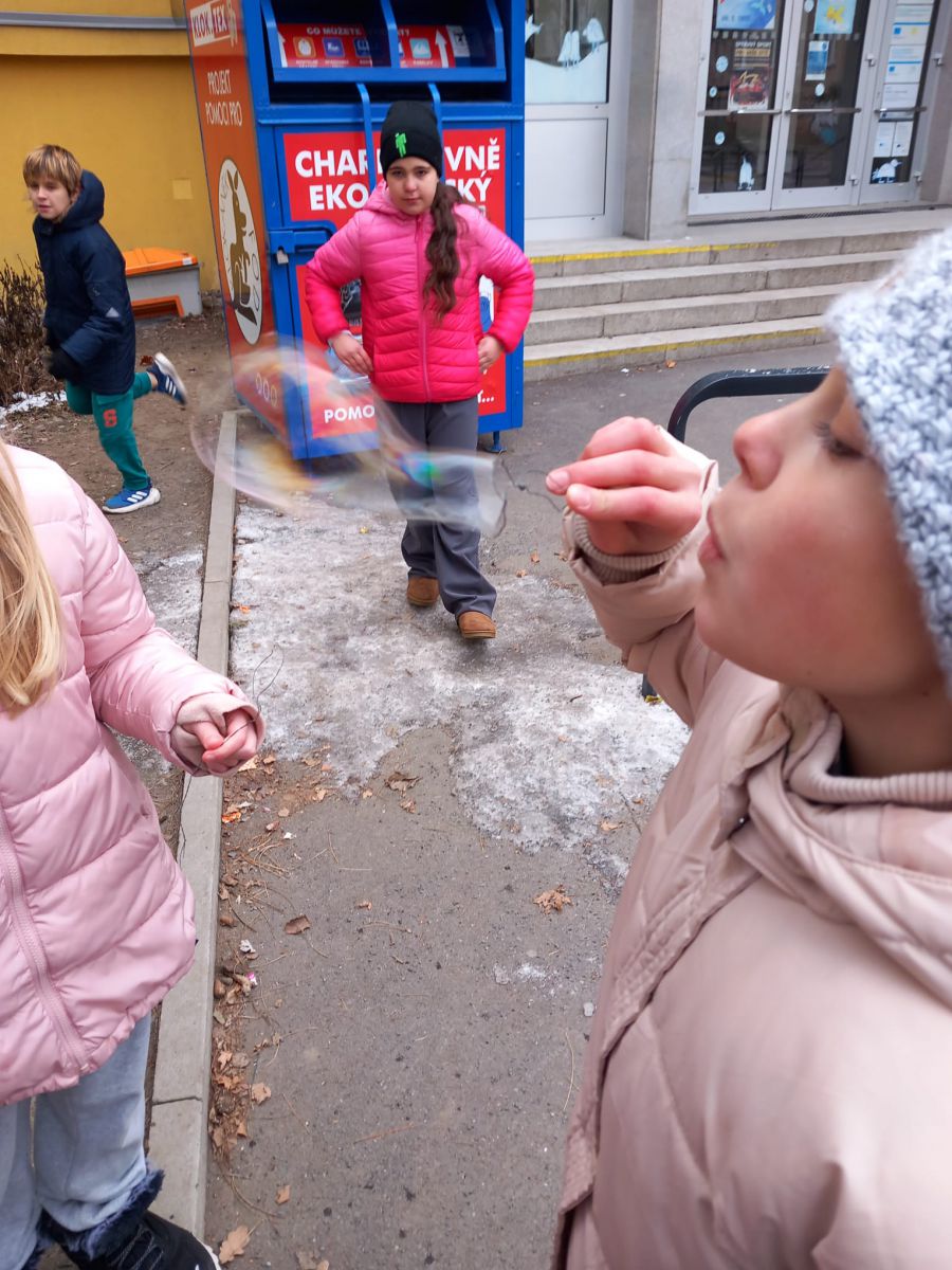 Co si vyzkoušíš sám, to ti dá nejvíc. 4.B prováděla pokusy ve ,,venkovní laboratoři".