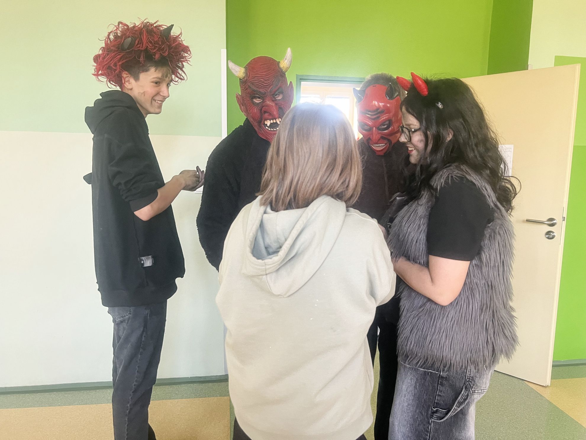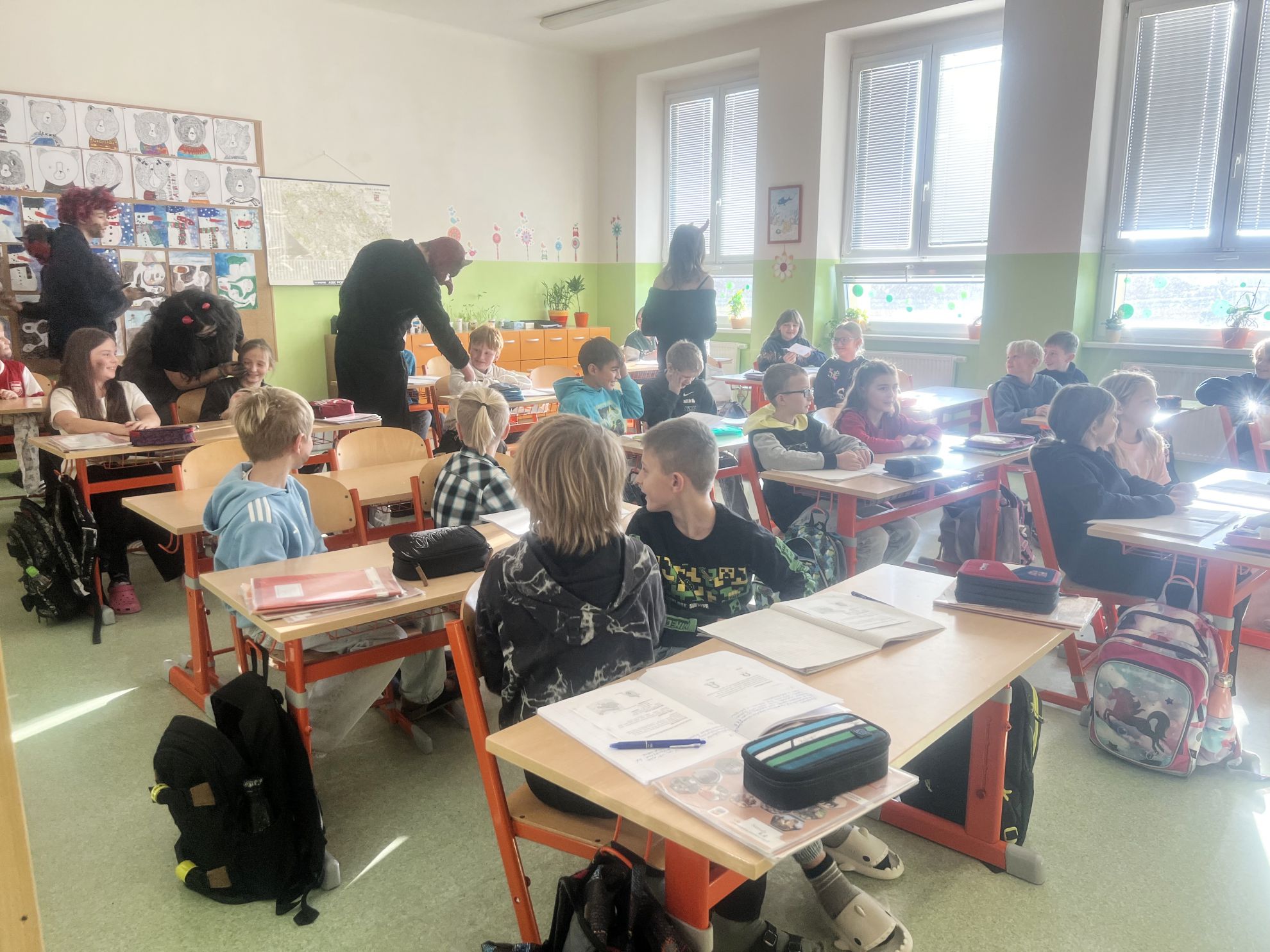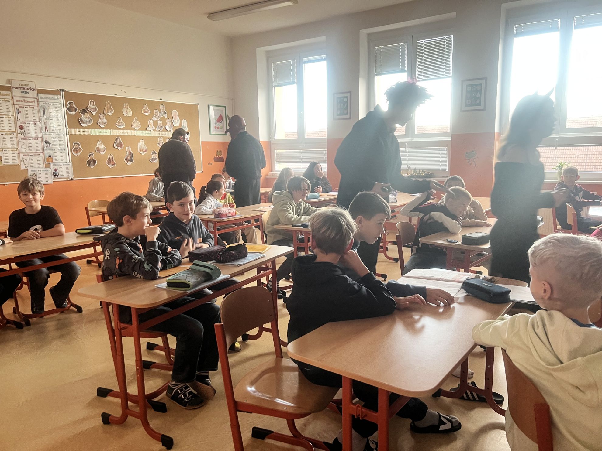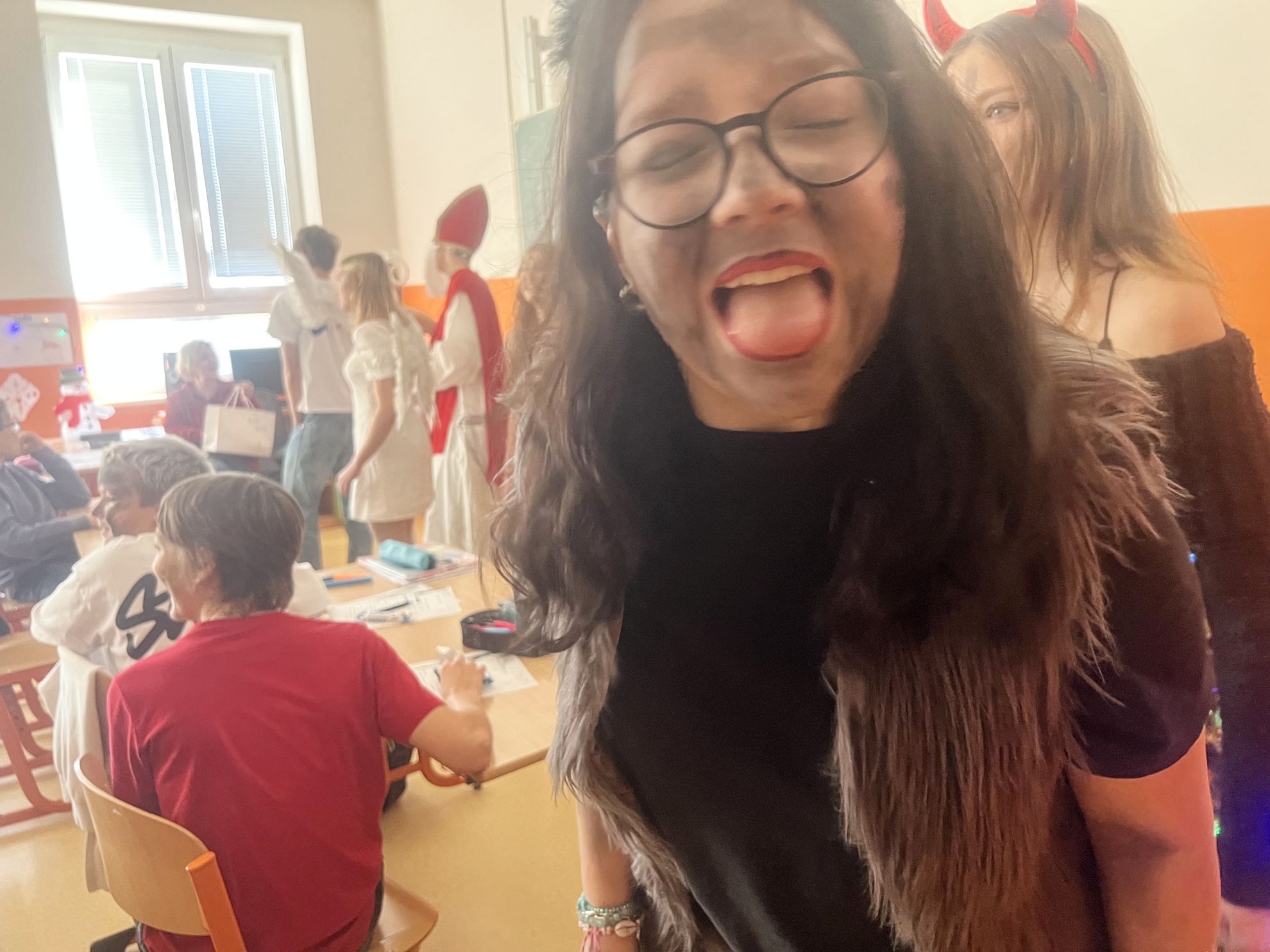 Početná družina čertů a andělů v čele se svatým Mikulášem navštívila naše žáky. Někteří se trošku obávali, zda nebudou muset obhajovat své skutky, ale většina uvítala nebesko-pekelnou delegaci radostně. Dobrotivost andělů i spravedlivý hněv čertů byly v rovnováze, Mikuláš dohlížel na spravedlivé rozdělení dobrot. Zajímavé je, že někteří čerti a někteří andělé jakoby připomínali žáky a žákyně 9.A. Ale to je čistá náhoda.