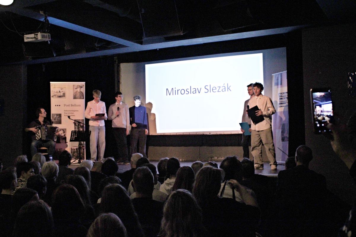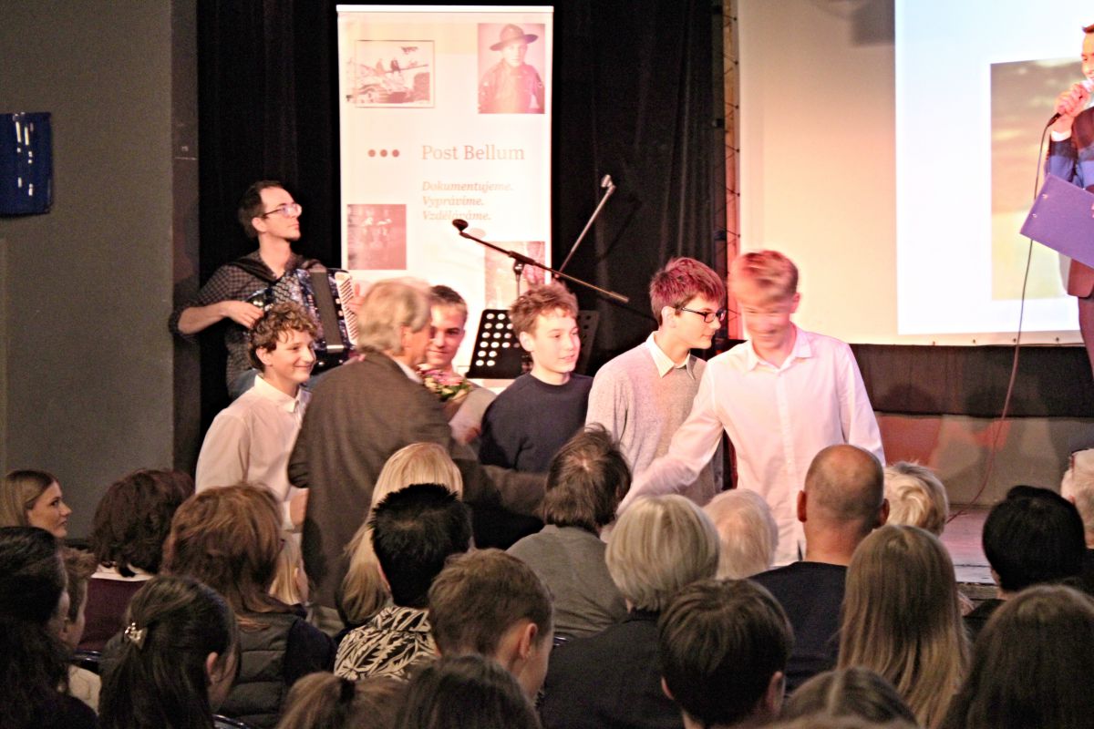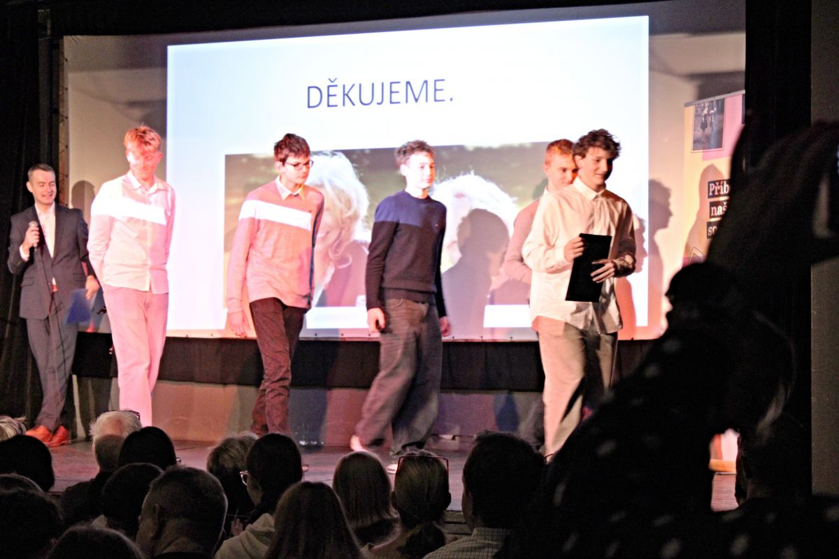 V letošním školním roce se žáci a žákyně 8. ročníků opět zapojili do projektu Příběhy našich sousedů, který spadá do činnosti organizace Post Bellum/ Paměť národa. Náročného úkolu najít, oslovit a přesvědčit pamětníka ke sdílení svého životního příběhu a následně tento příběh zpracovat, se nejlépe zhostila skupina chlapců z 8.C. Na tomto odkazu se můžete seznámit s kompletně zpracovaným projektem tohoto týmu. Jejich pamětníkem je pan Miroslav Slezák - hokejový reprezentant. Pod vedením paní učitelky Syrovátkové si chlapci vyzkoušeli role reportérů, historiků, fotografů, zvukařů, publicistů a dalších. Navštívili svého pamětníka přímo v jeho domově v Novém Berštejně, vypravili se načerpat informace z archivu, rozhlasovou reportáž natáčeli v profesionálním studiu. Závěrem projektu byl večer prezentací vybraných skupin osmáků v divadle Dobeška 26. března. Před našlapaným sálem, plným pamětníků, jejich rodin, novinářů, zástupců města, pedagogů, historiků a dalších hostů musely skupiny předvést upravenou zkrácenou a pro tento večer speciálně zdramatizovanou reportáž o svém pamětníkovi. Naše skupinka předvedla skvělé dílko formou simulovaného vysílání dobového televizního pořadu Branky, body, vteřiny. Během reportážního vstupu z mistrovství světa proběhl vlastně celý život této sportovní legendy. Hoši byli suverénní a jejich vystoupení mělo velký ohlas u diváků v sále. Jsme potěšeni, že naši školu takto reprezentovali a děkujeme i všem ostatním našim osmákům, kteří se tomuto krásnému úkolu věnovali s podobným nasazením. Pro všechny to byla jistě dobrá životní zkušenost.
