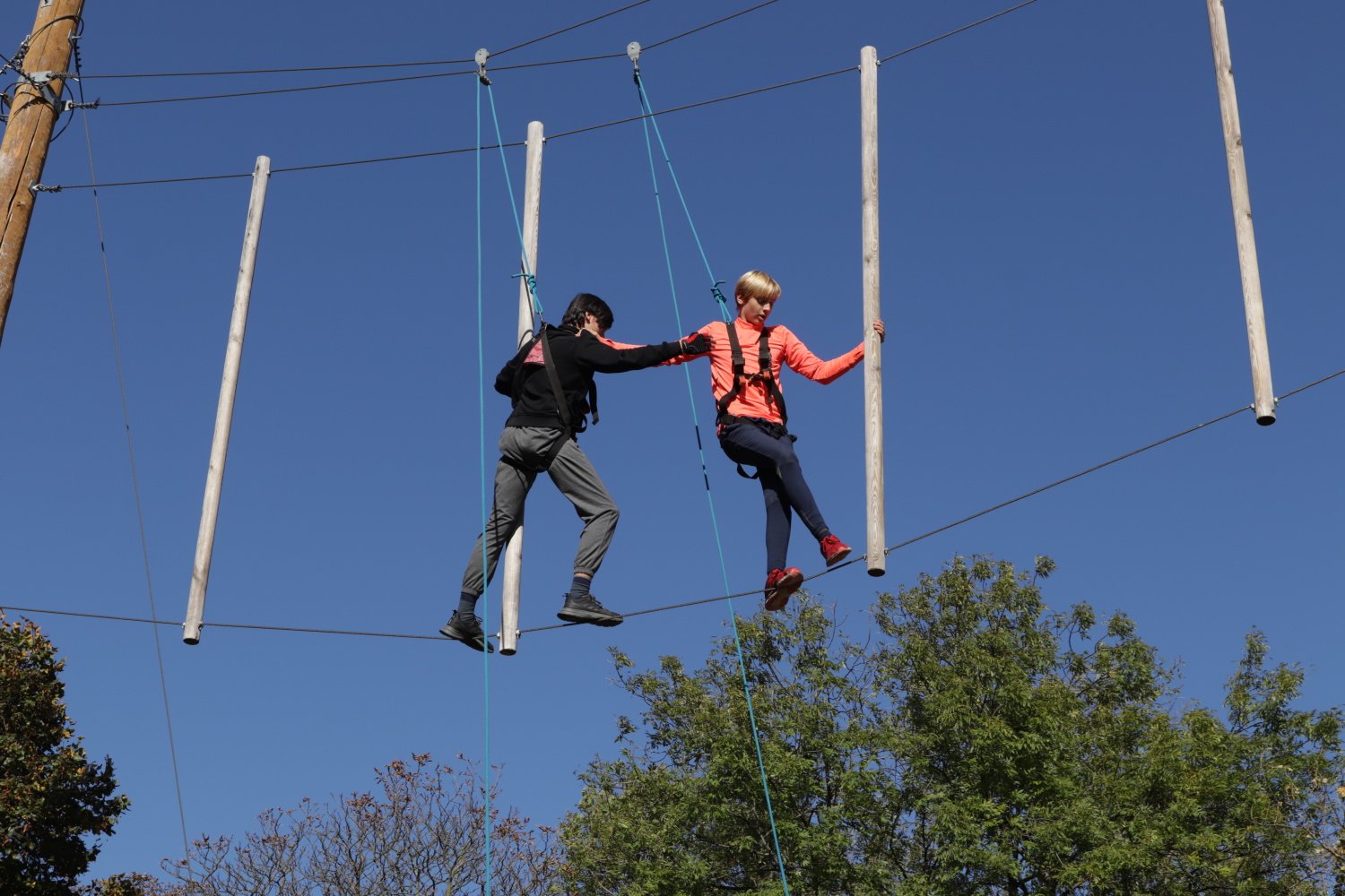 Sportovně taktická soutěž v lanovém centru ve Vysočanech. Ve čtvrtek 21.10. se do lanoví vydaly děti 6. a 7. ročníků, v pátek 22.10. děti z 8. a 9. tříd. Ve výšce kolem 7 metrů se musely spolehnout jeden na druhého.