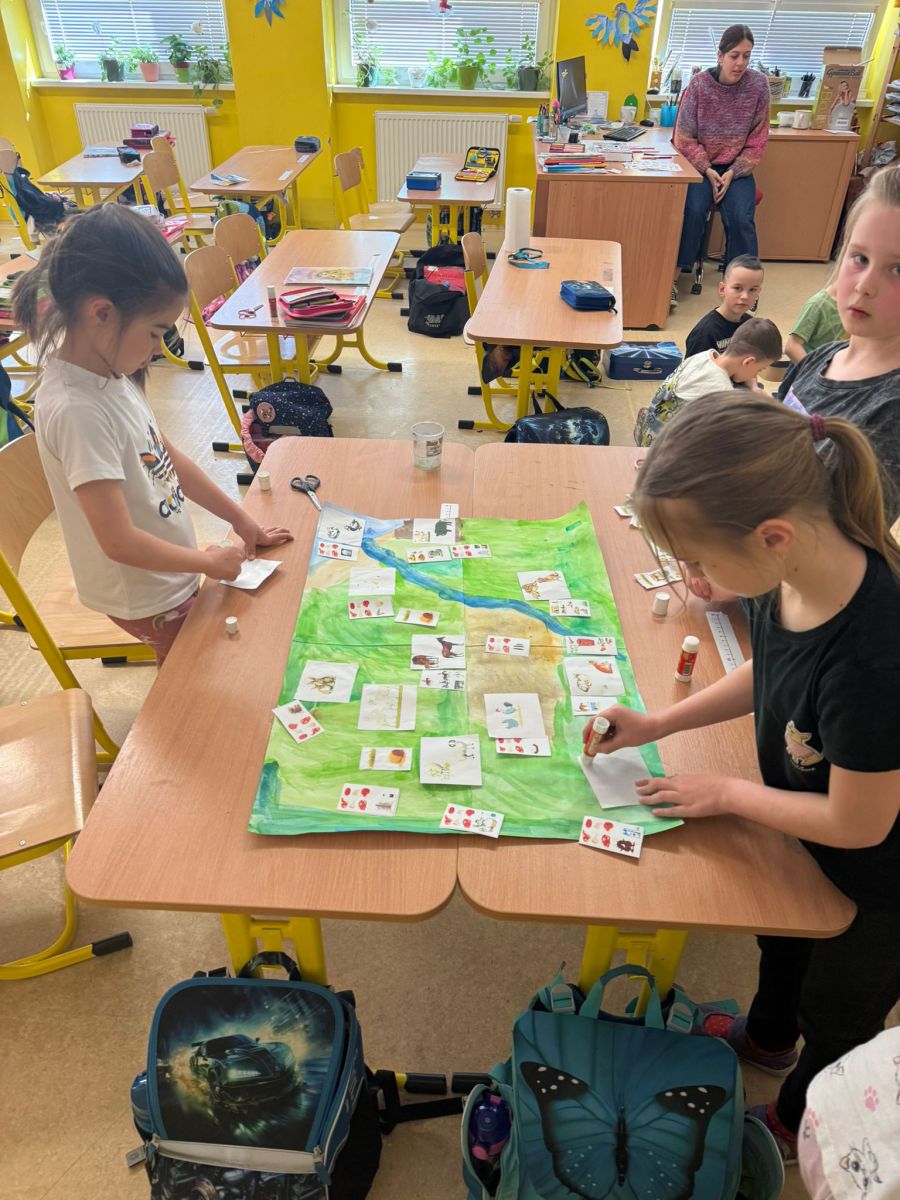 Celý den se děti 1.B zabývaly vším, co se týká hospodářských zvířat a domácích mazlíčků. Jak se říká samci, samici a mláďatům? Jaký užitek z chovu zvířat člověk má? Čím se zvířata živí?Atd. Děti pracovaly samostatně i ve skupinách. Spousta nových znalostí a mnoho zkušeností jak spolupracovat se spolužáky. Díky paní učitelce Jirsákové i paní asistentce Evičce za fůru práce s přípravou !