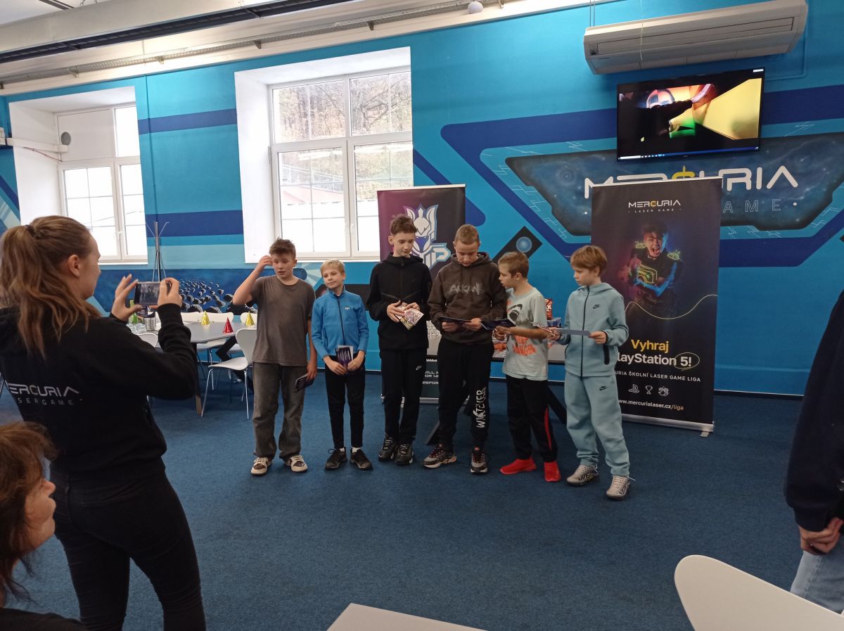 První letošní kolo školní ligy v laser game se konalo ve třech termínech během listopadu a začátku prosince. Účastnilo se ho 13 šestičlenných týmů tříd druhého stupně. Do druhého kola, které se odehraje v březnu, postupuje 9 týmů. Doufáme, že co nejvíc z nich se probojuje do finále.